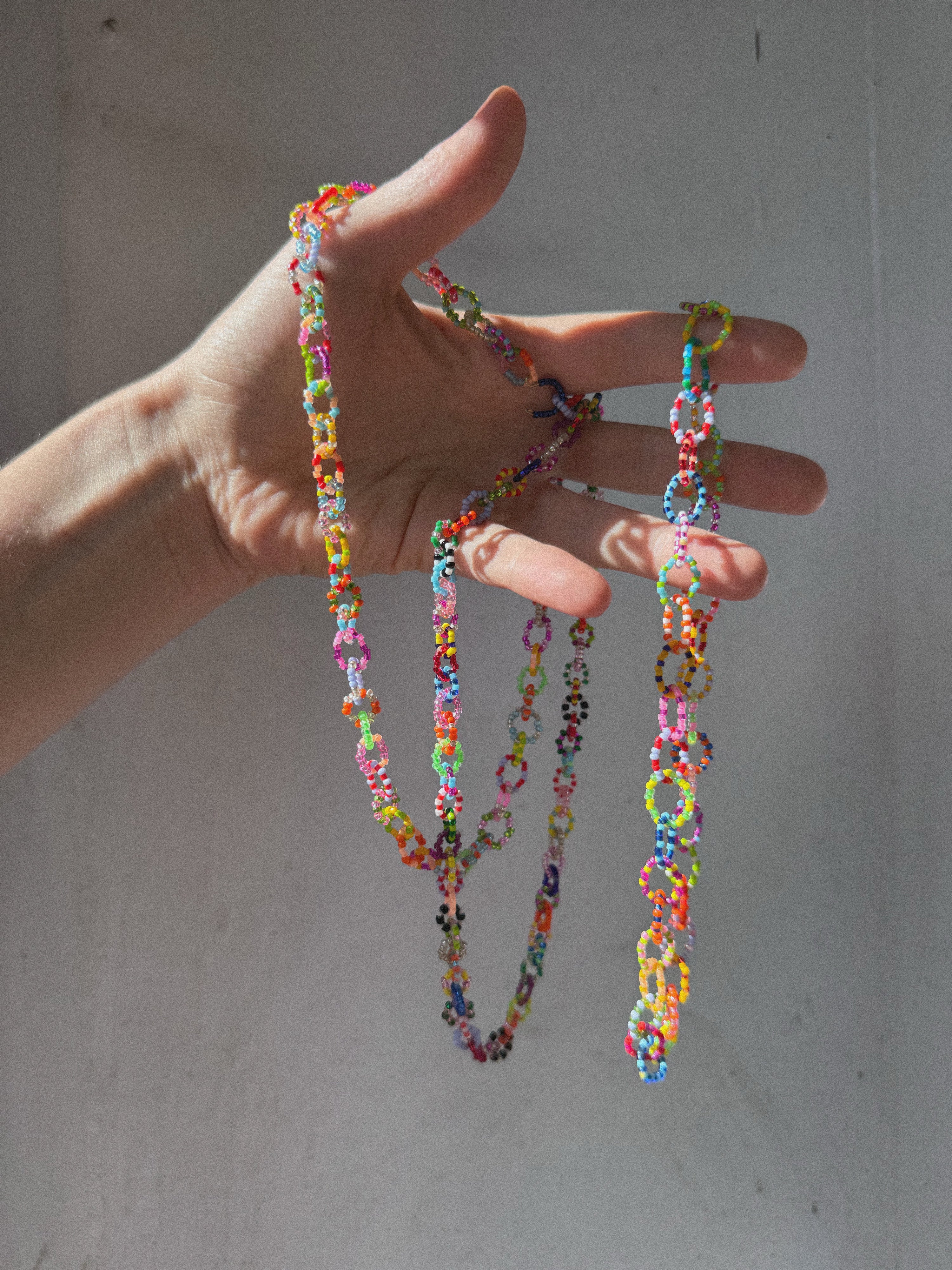 Hand beaded loops strung together to create a beautiful collar. Unique, delicate...
