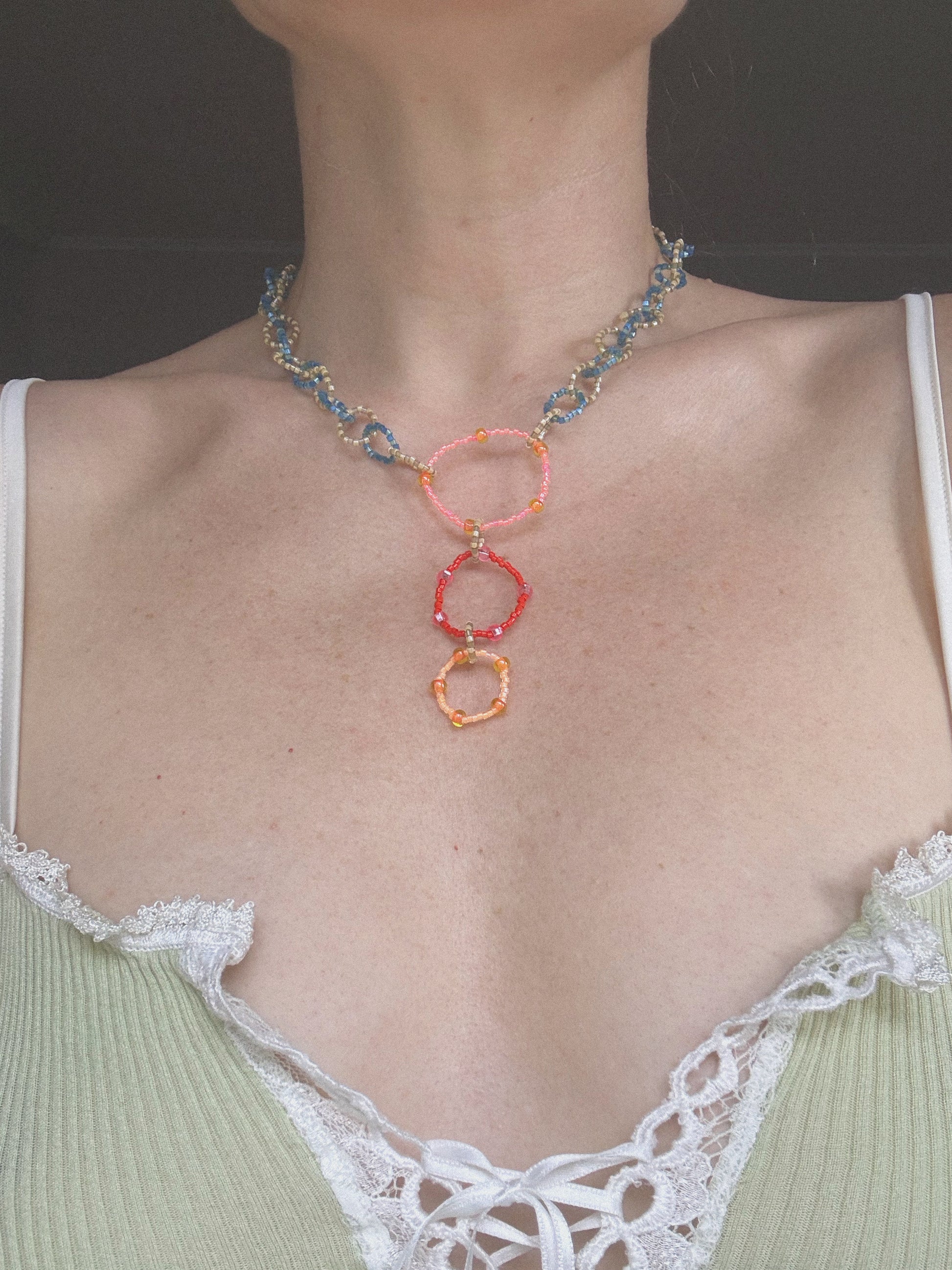 A wearable celebration of color. Hand Crafted with high quality Japanese Miyuki seed beads. Triple loop Pendant in graduated sizes. Light weight and comfortable. Discreet beaded hook closure in back. Measures approximately 17 Inches when laid flat. Custom lengths available- please DM me on instagram.