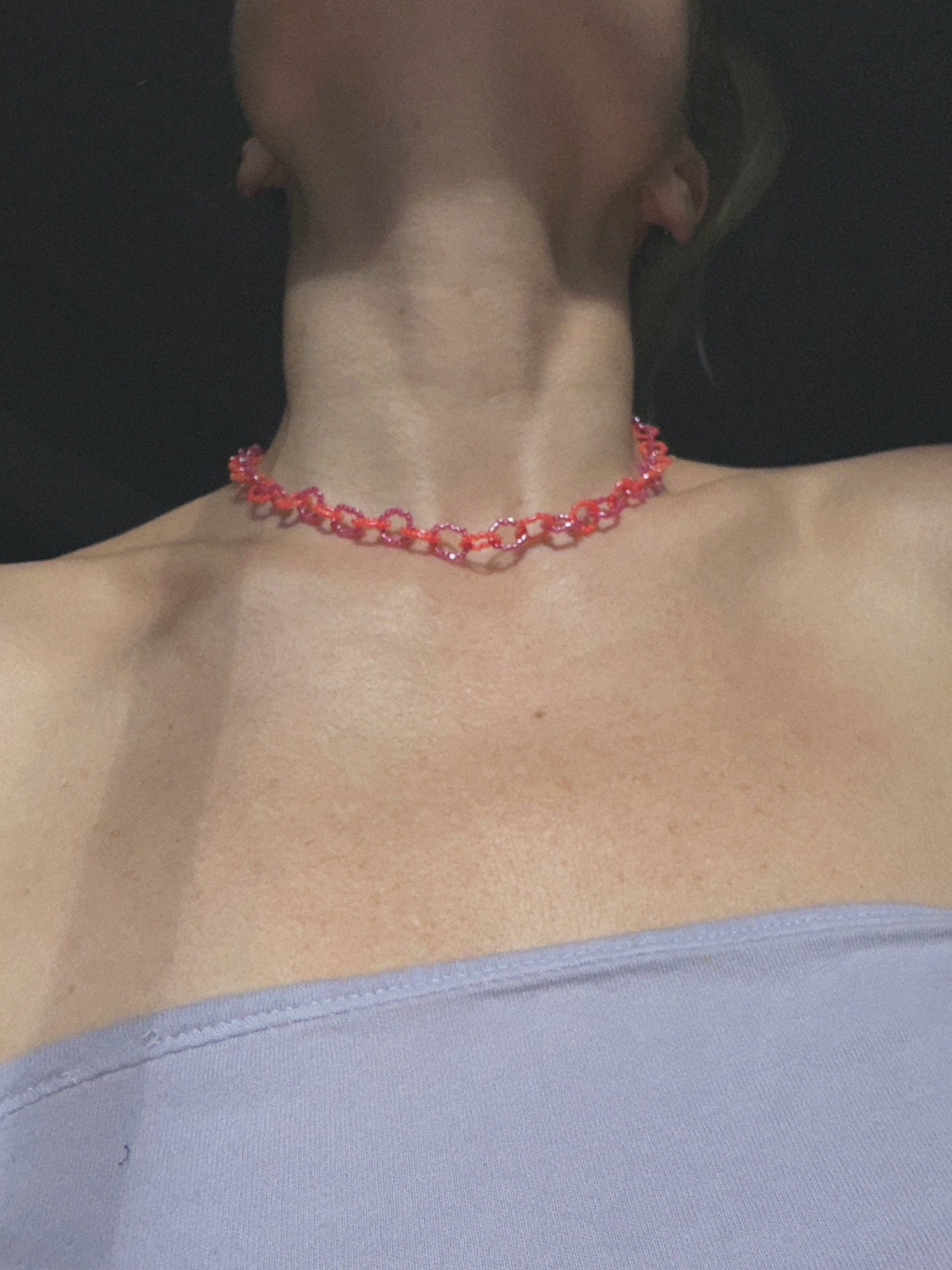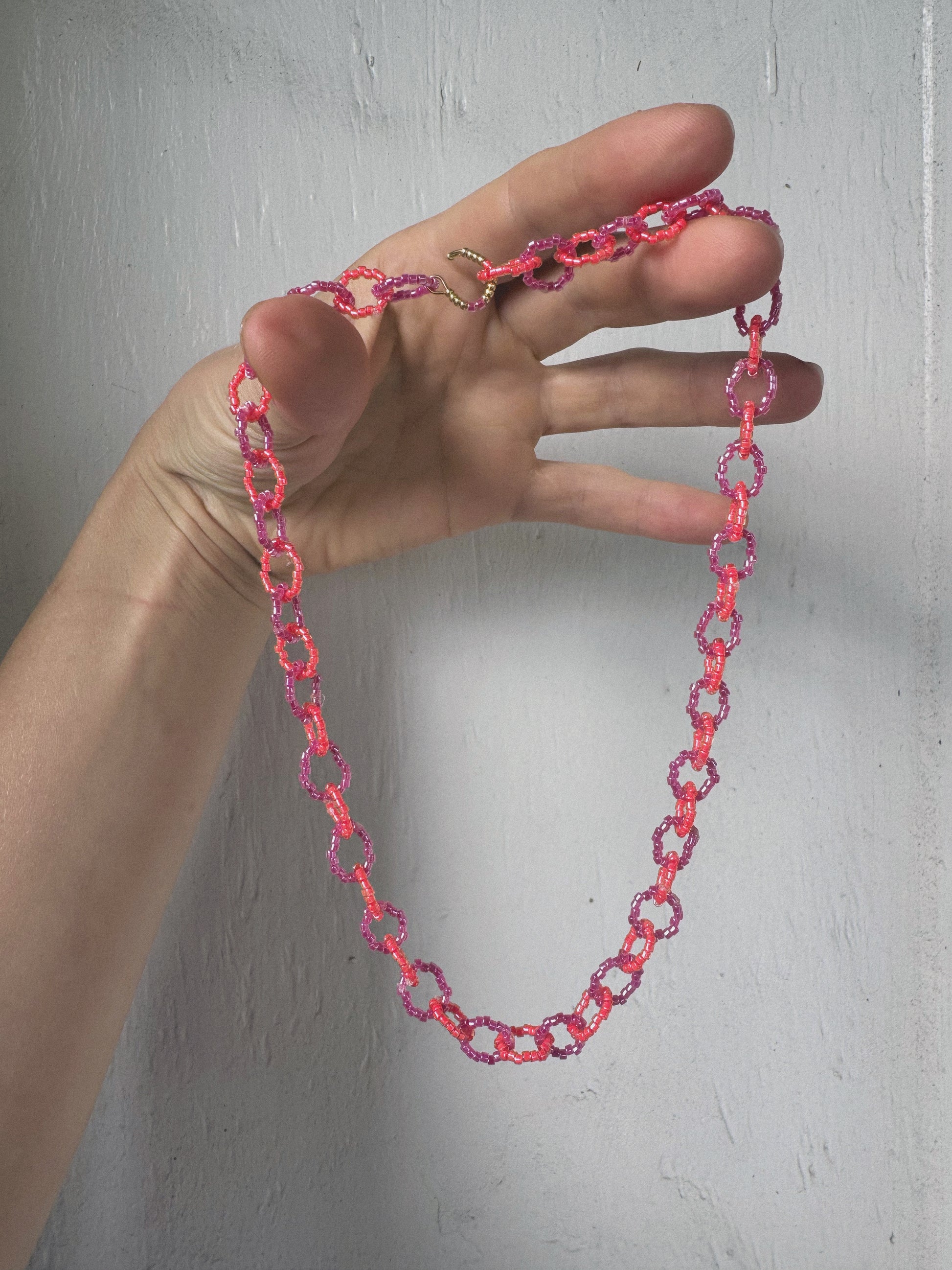 Signature LOTTI beaded chain link necklace. Alternating shades of pink. lightweight and delicate yet durable. Length is 16 inches. Custom lengths available- Please DM me on instagram.